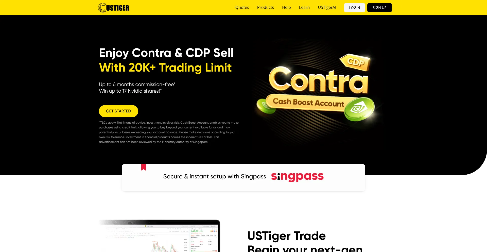 USTiger Brokers, one-stop investment in US stocks, SGX stocks, HK stocks, A-shares & other global assets. One of the best stock trading platforms in Singapore.