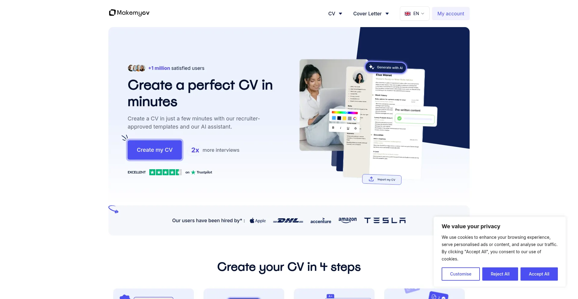 Create a perfect CV in just a few minutes with our recruiter-approved templates, our AI generator, and expert advice.