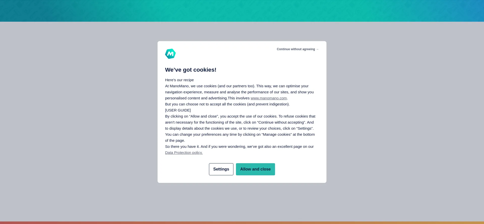 O site implementa mecanismos de consentimento de cookies em conformidade com regulamentações de privacidade como GDPR ou CCPA. Isso demonstra que manomano.com adere a padrões de proteção de dados e fornece aos usuários controle sobre práticas de coleta de dados pessoais.