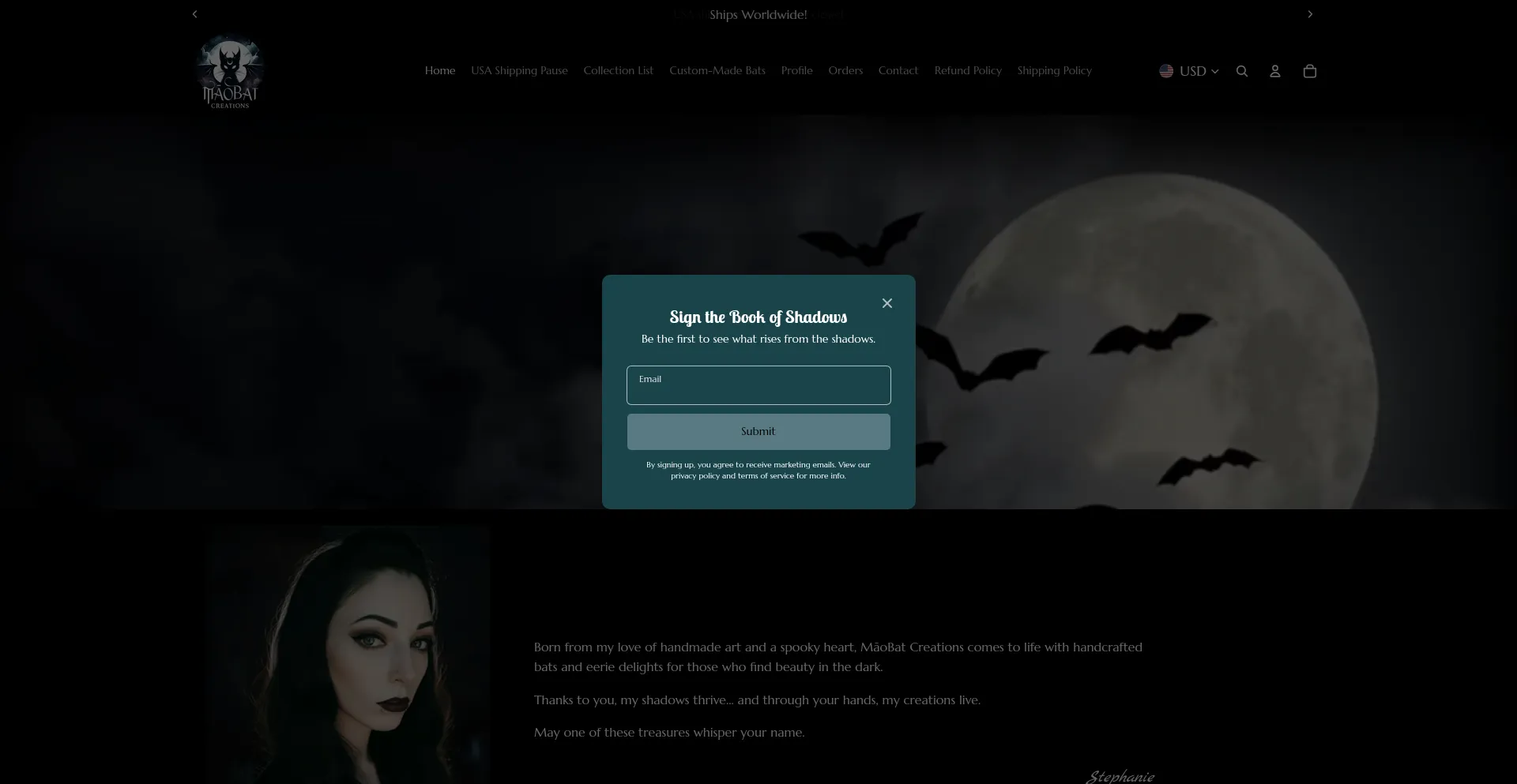 Enter the dark soul of MāoBat Creations, where shadows take shape. Discover handmade bat plushies, spooky charms, and gothic treasures born from the dark.
