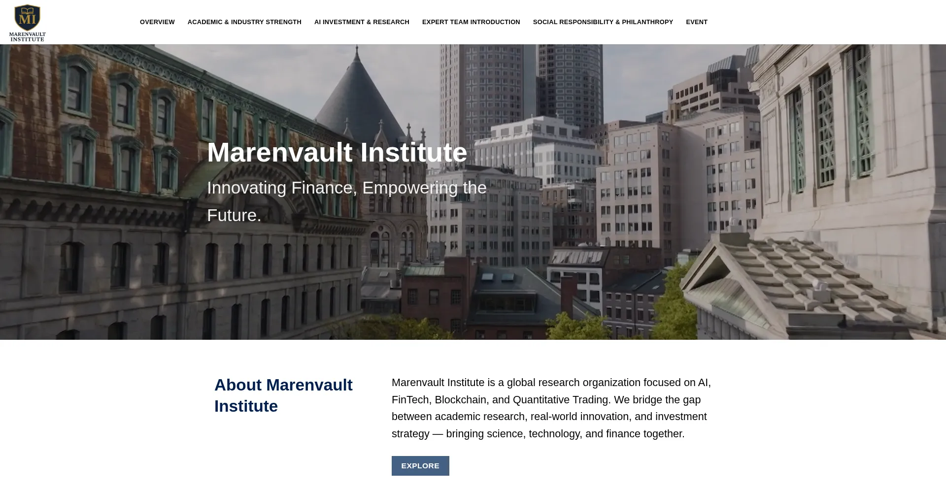 Marenvault Institute pioneers interdisciplinary research in AI, FinTech, and Blockchain. Connecting Quantitative Trading innovation with responsible investment practices