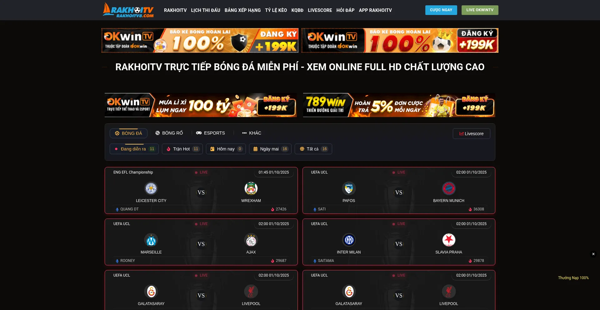 RAKHOI TV cung cấp link xem bóng đá trực tiếp hôm nay, miễn phí 100%, không quảng cáo, không giật lag. Cập nhật nhanh, chất lượng HD