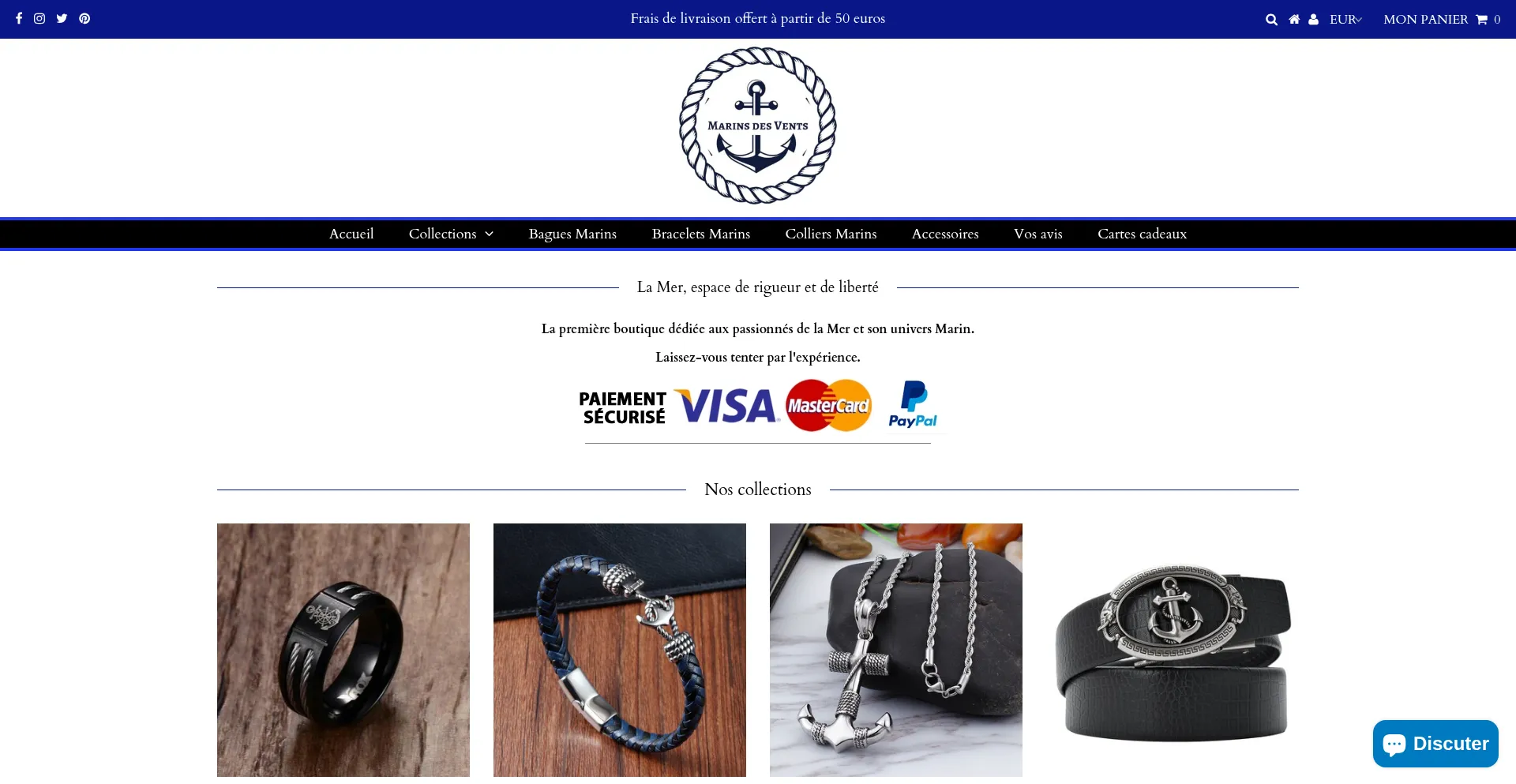 Découvrez notre boutique dédiée aux trésors du monde des Marins. Vous y trouverez votre bonheur grâce à nos collections exclusives et uniques.