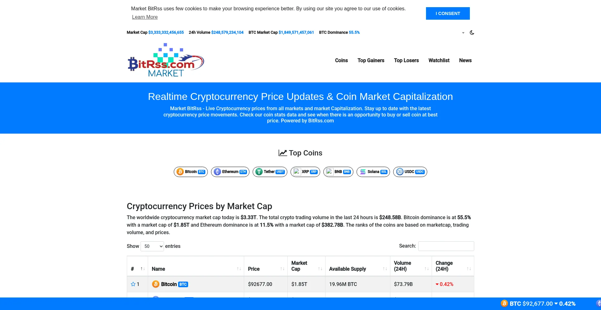 Market BitRss - Cryptocurrency Market Cap, Live Prices, Charts & Ticker