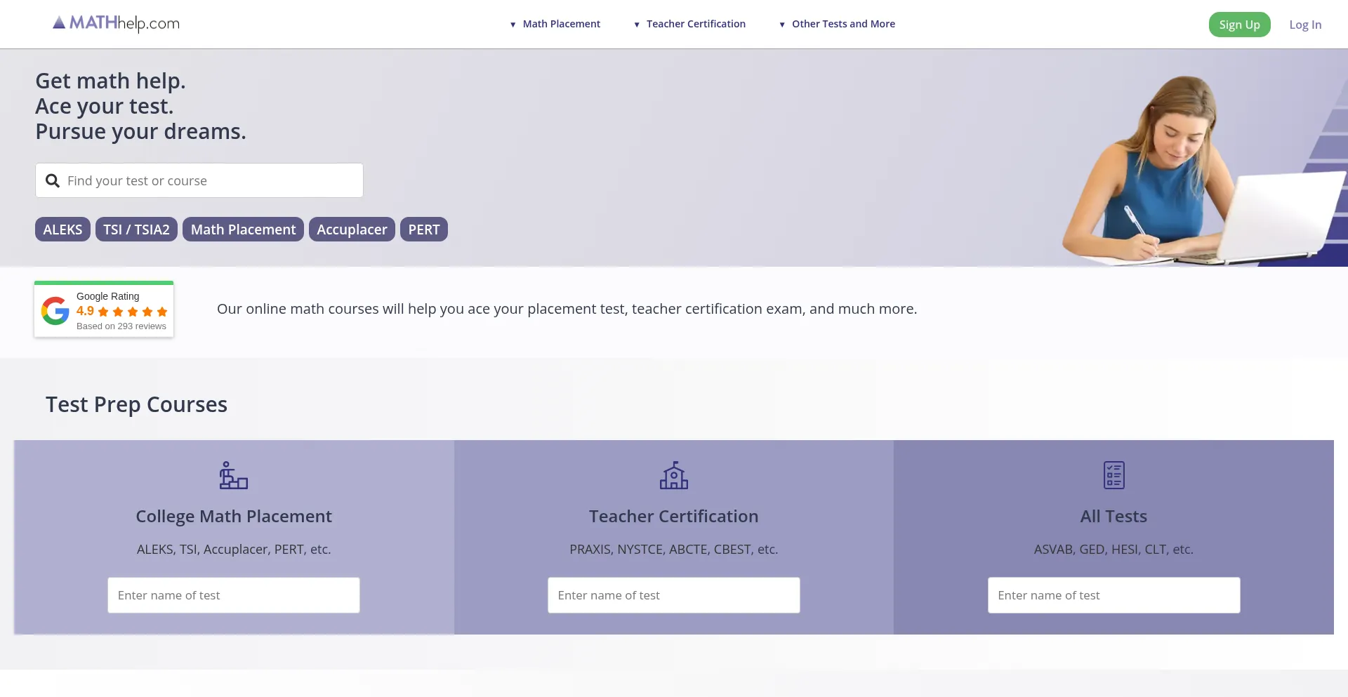 Complete online math courses for placement tests, teacher certification exams, and more. Get the math help you need to ace your test and pursue your dreams.