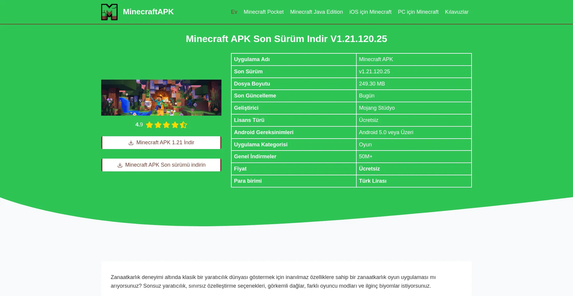 Minecraft APK Son Sürüm Indir V1.21.120.25 Ekim 2025