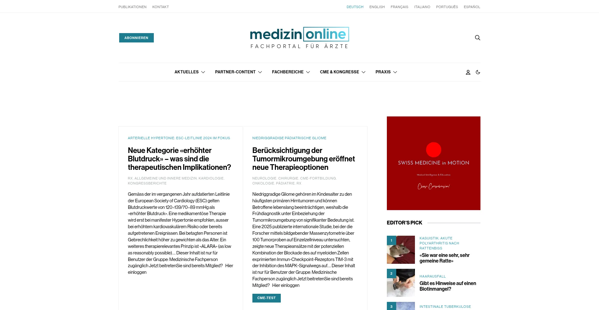 Medizinische Fachartikel, Fortbildungen und CME-Tests, sowie Kongressberichte und News für Ärzte und medizinische Fachpersonen.