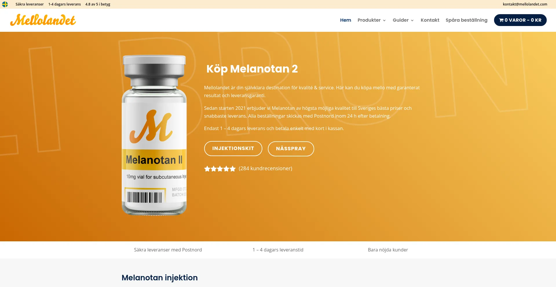 Köp melanotan till Sveriges bästa pris hos Mellolandet. Vi är en melanotan 2 leverantör i Sverige med prisgaranti och snabba leveranser!