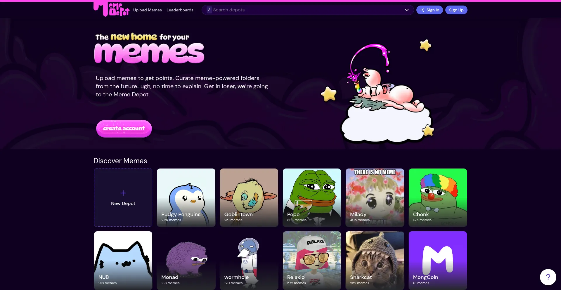 Home to the best memes on the internet. Create depots to house all your images, GIFs, and videos.