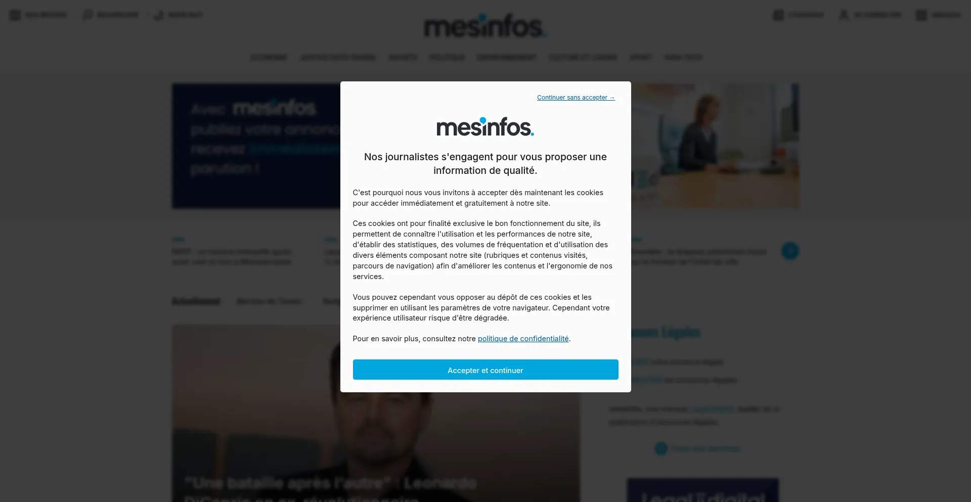 mesinfos, toute l'actualité politique, économique, environnementale, sociétale, juridique et culturelle, près de chez vous. Publiez vos annonces légales sur mesinfos.