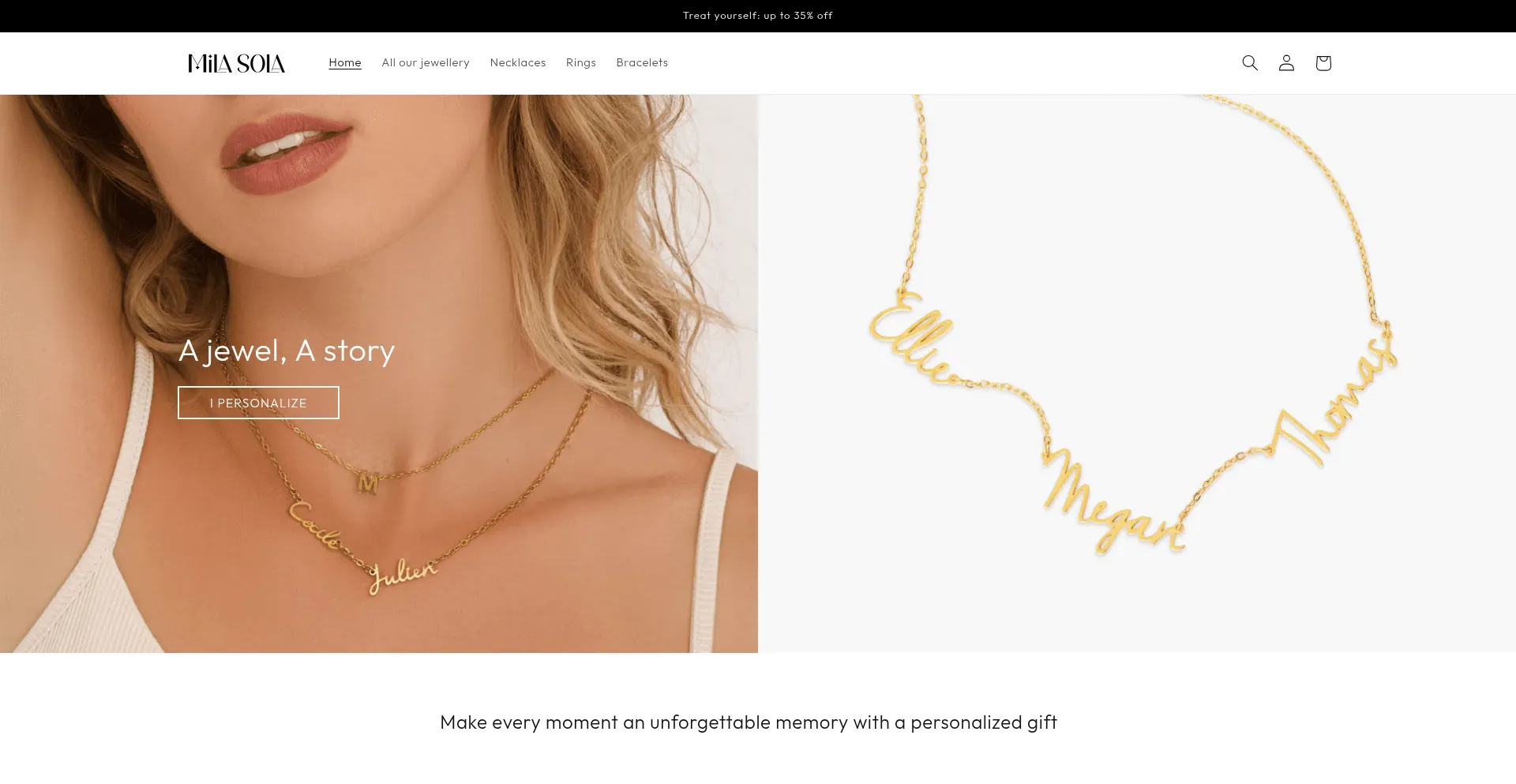 Discover Mila Sola's personalised jewellery: bracelets, necklaces and rings designed to enhance your precious moments. Give a unique and unforgettable gift.