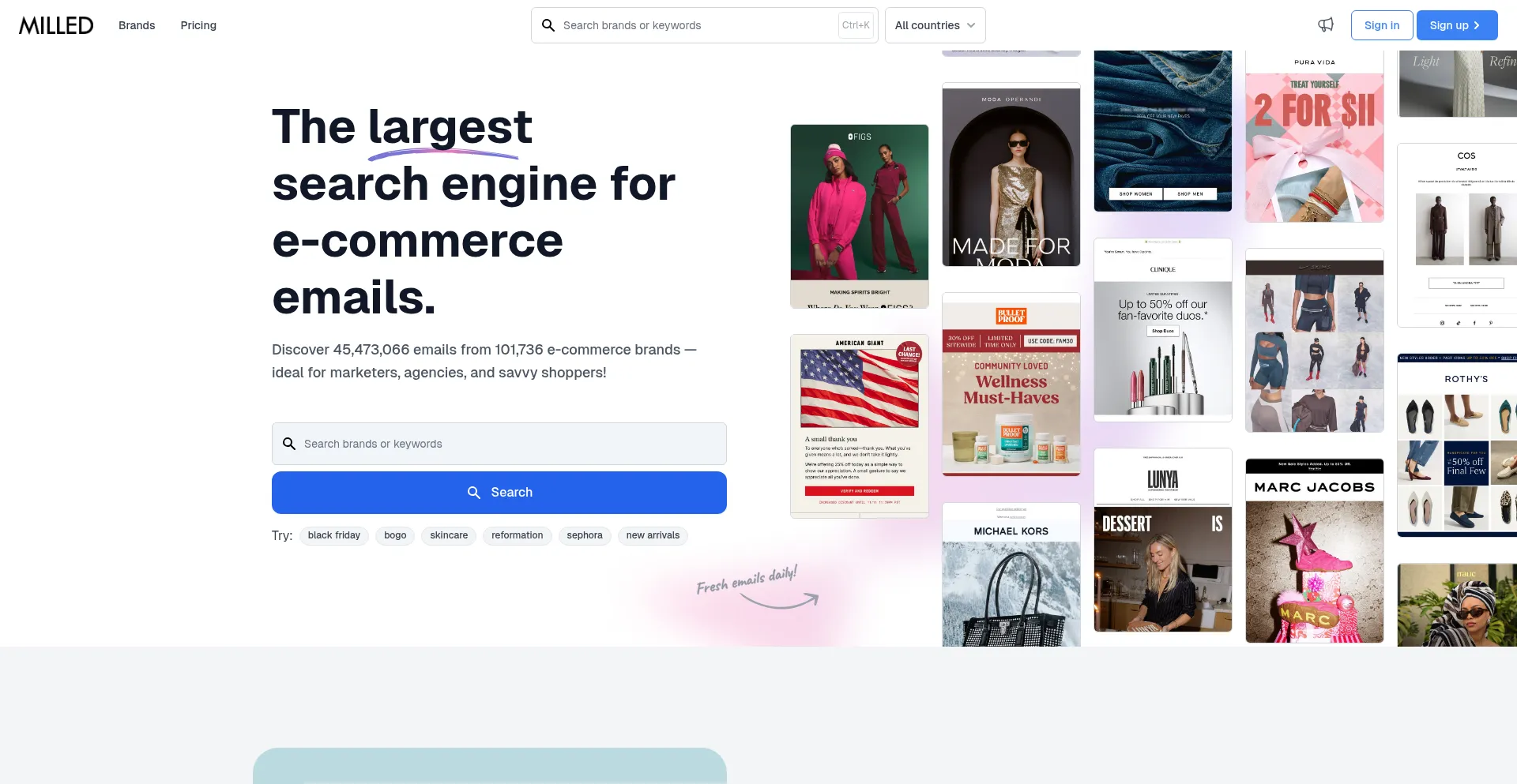 Milled is a search engine for email newsletters. Find sales, deals, coupons, and discount codes from retailers and brands.