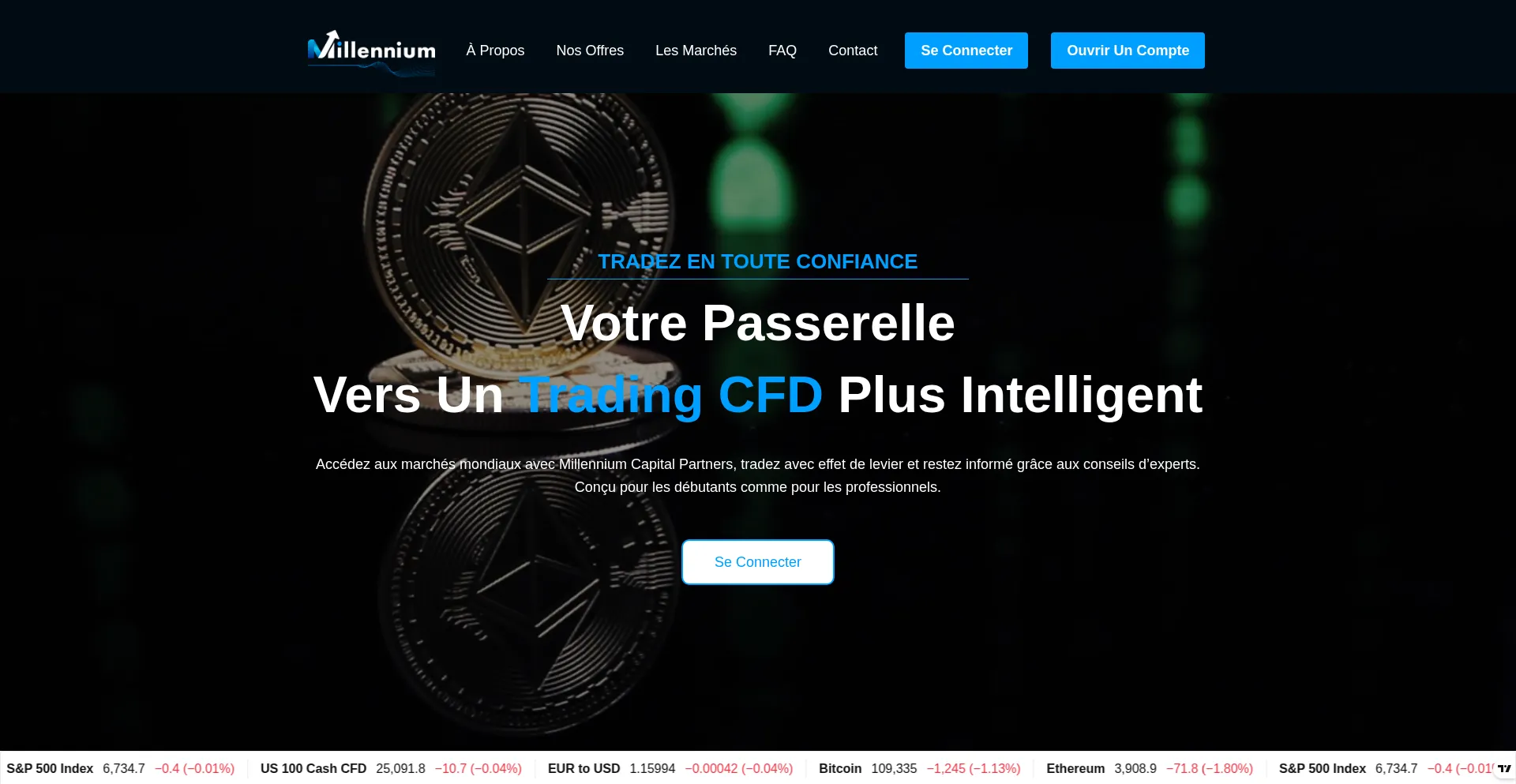 Accédez aux marchés mondiaux avec Millennium Capital Partners, tradez avec effet de levier et restez informé grâce aux conseils d’experts.