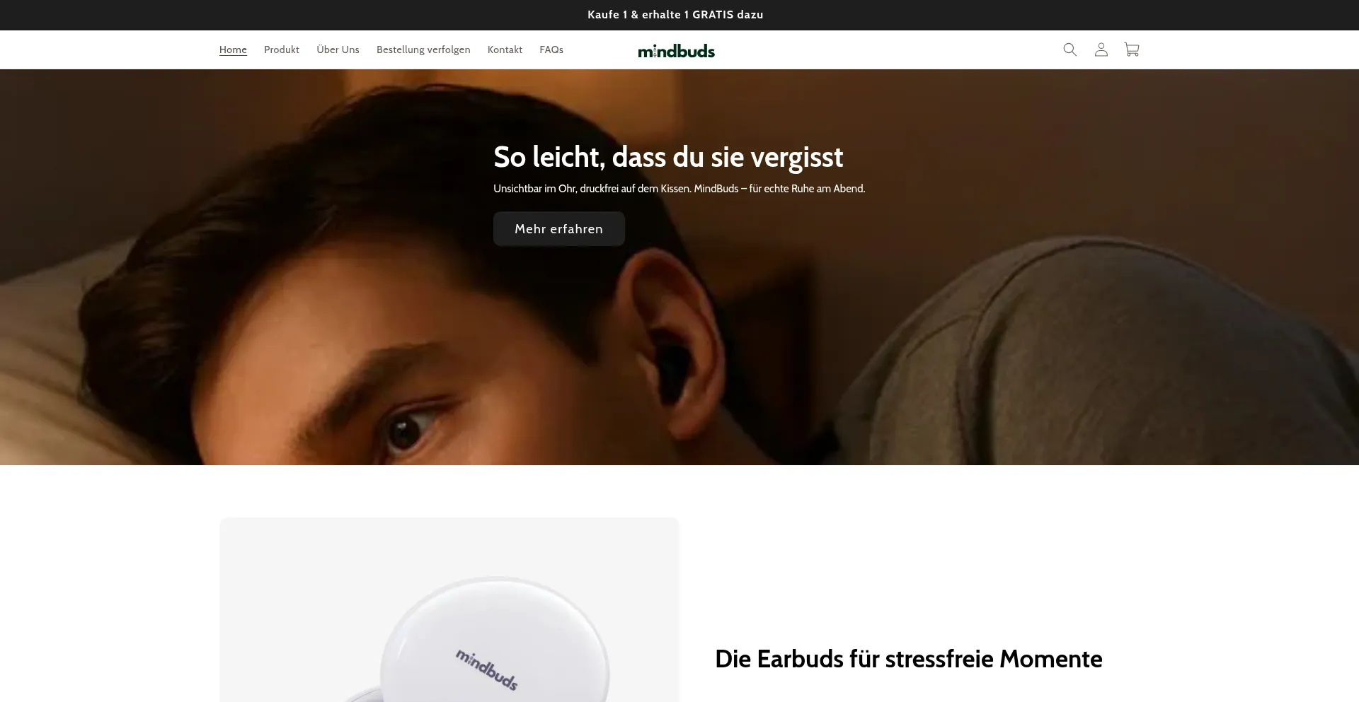 MindBuds sind ultraleichte, ohrangepasste Earbuds – druckfrei in Seitenlage, natürliche Geräuschdämpfung. Perfekt für Podcasts, Filme & ruhige Abende.