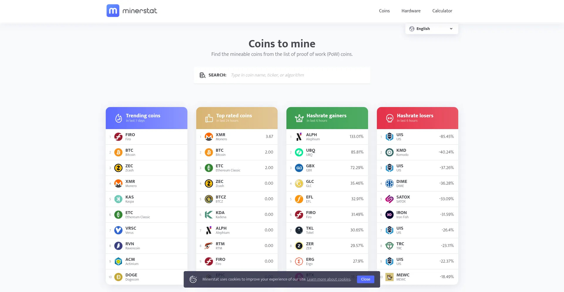 Coins to mine | minerstat