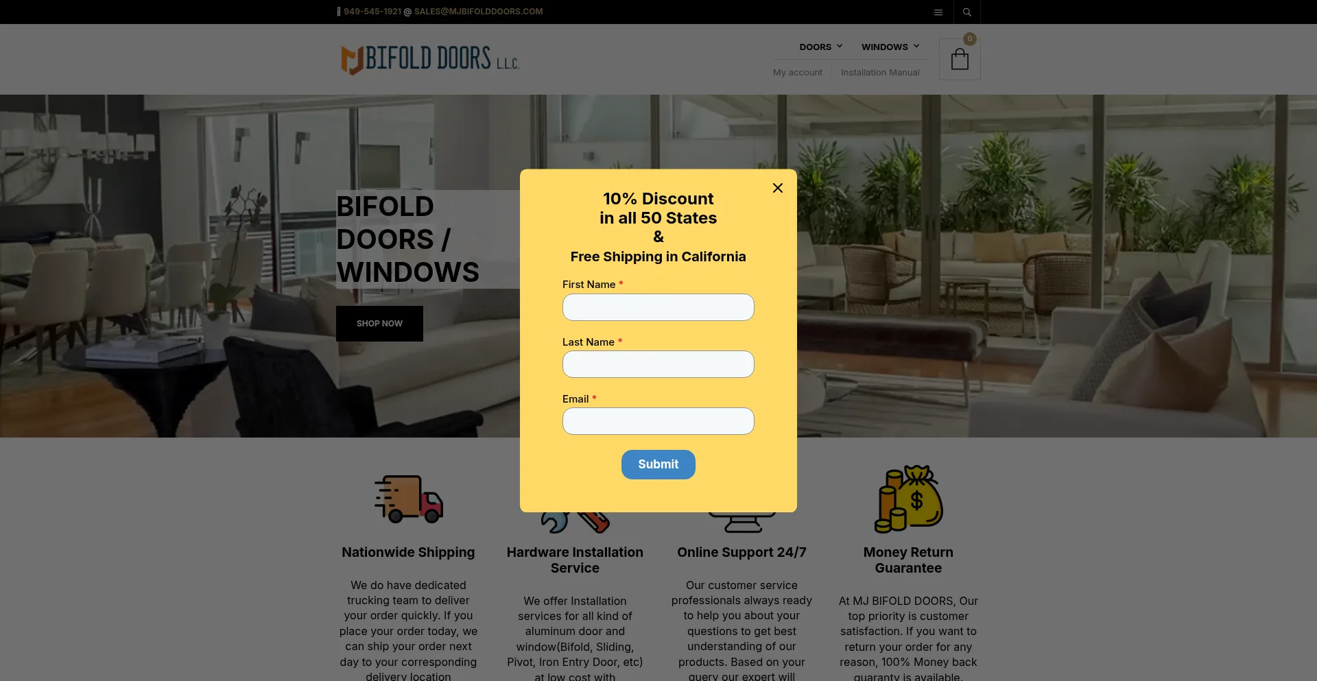 O site implementa formulários de coleta de dados solicitando informações pessoais incluindo nomes, endereços de e-mail, números de telefone ou outros detalhes sensíveis. Os usuários devem verificar a legitimidade de mjbifolddoors.com e revisar políticas de privacidade antes de enviar dados pessoais.