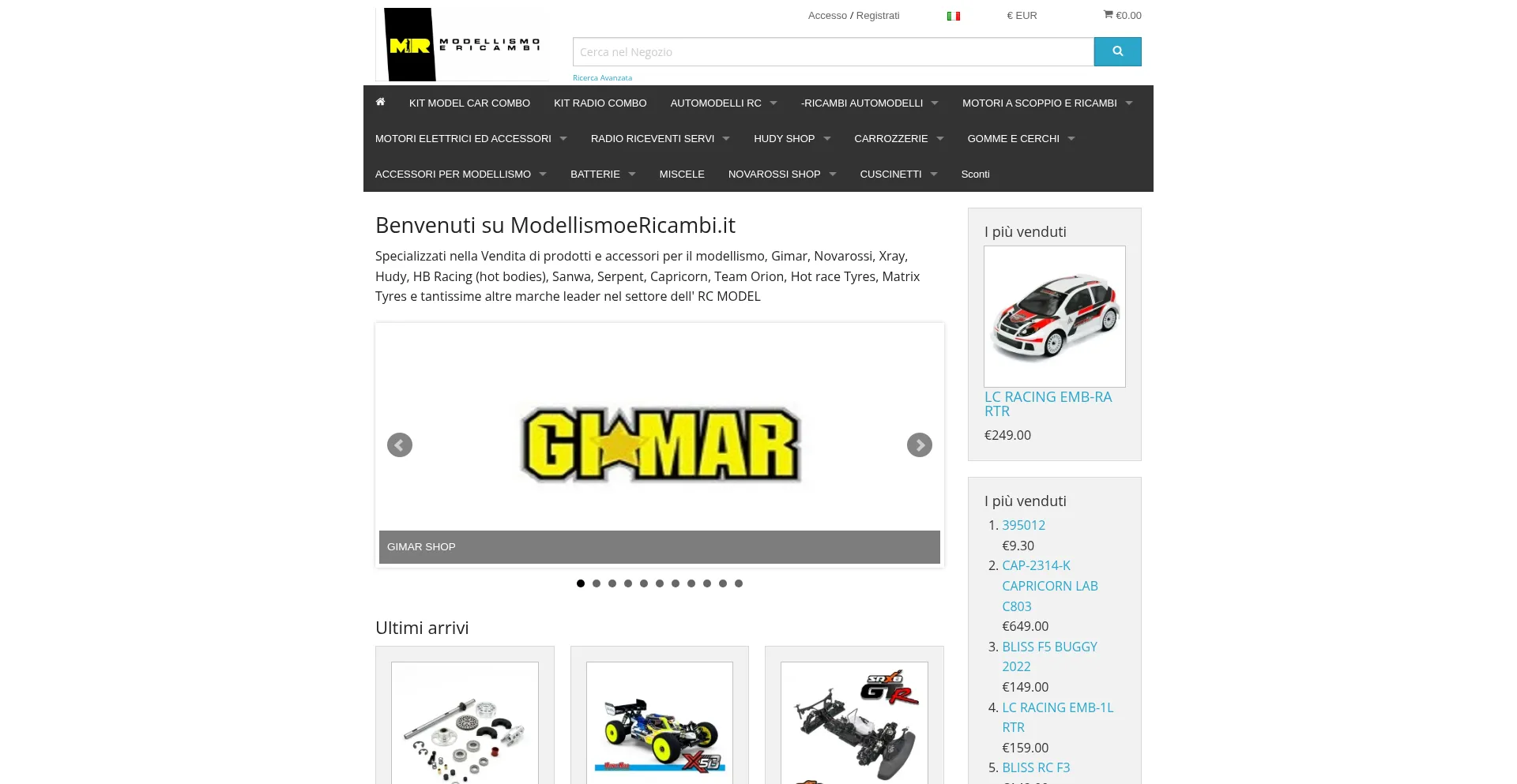 Specializzati nella Vendita di prodotti e accessori per il modellismo, Gimar, Novarossi, Xray, Hudy, HB Racing (hot bodies), Sanwa, Serpent, Capricorn, Team Orion, Hot race Tyre...