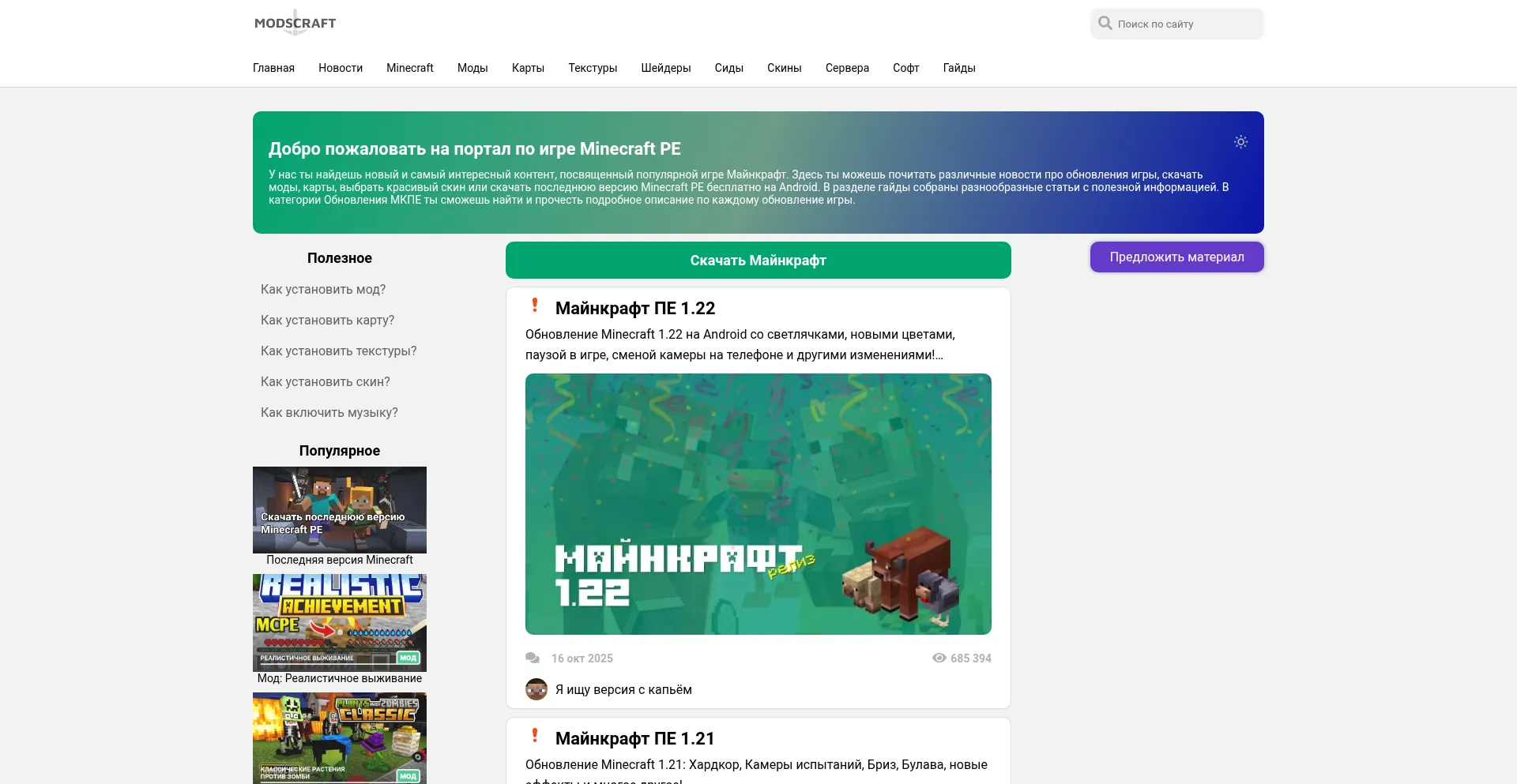 Портал ModsCraft. Сайт для любителей Minecraft PE
