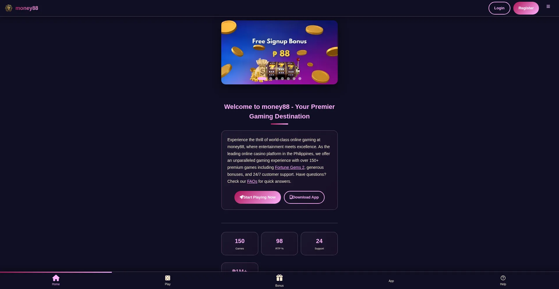 Join money88, the #1 online casino platform in Philippines! Experience premium slots, live dealers, and exciting games with high RTP rates. Register now for exclusive bonuses!