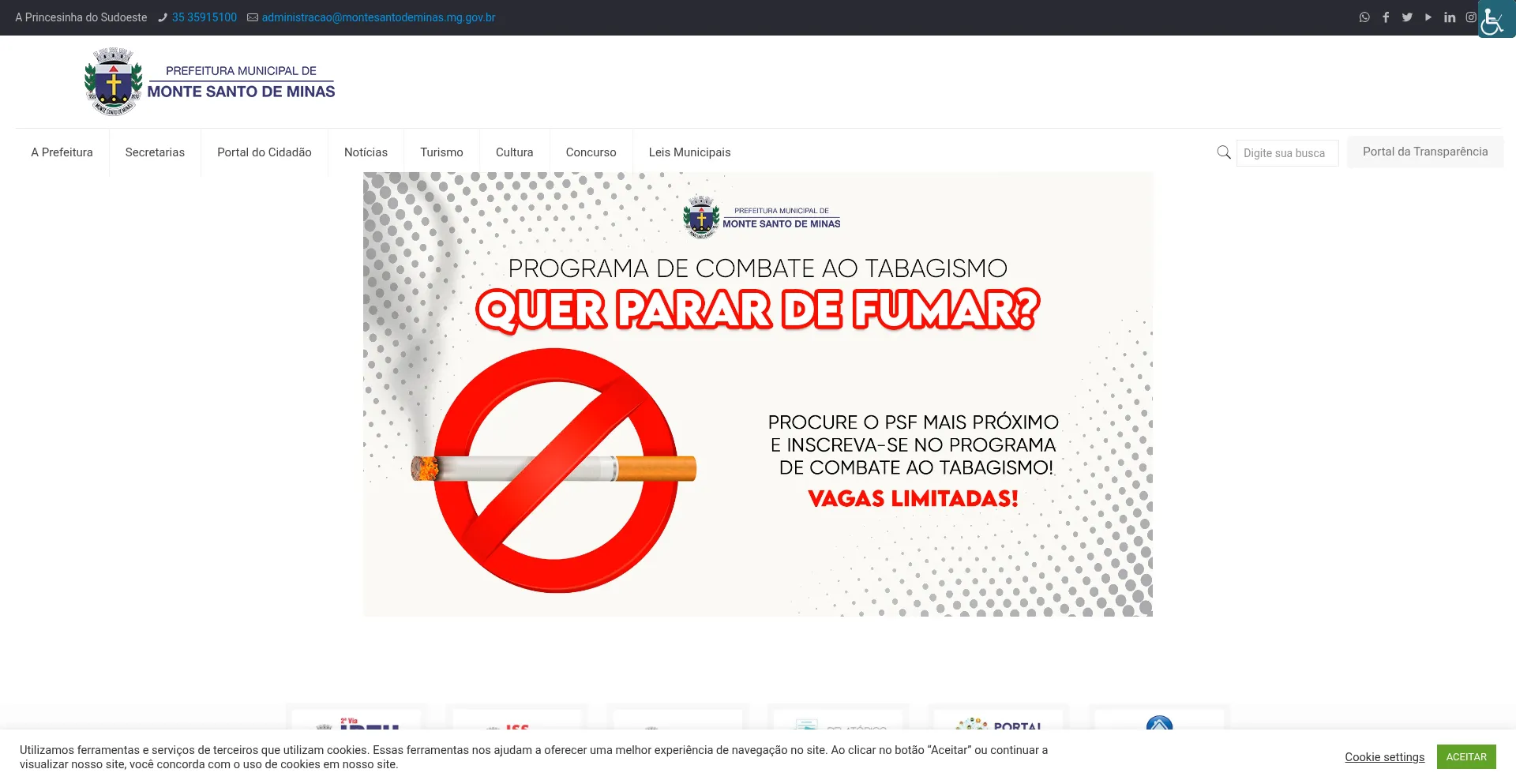 A presença de links de redes sociais no site indica que montesantodeminas.mg.gov.br mantém contas oficiais em redes sociais, o que é um sinal positivo de credibilidade e engajamento.