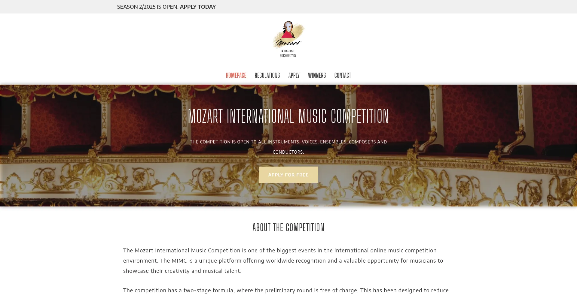 Mozart International Music Competition invites musicians from the whole world of all ages. Great instrumentalists, vocalists, composers and chamber ensembles.