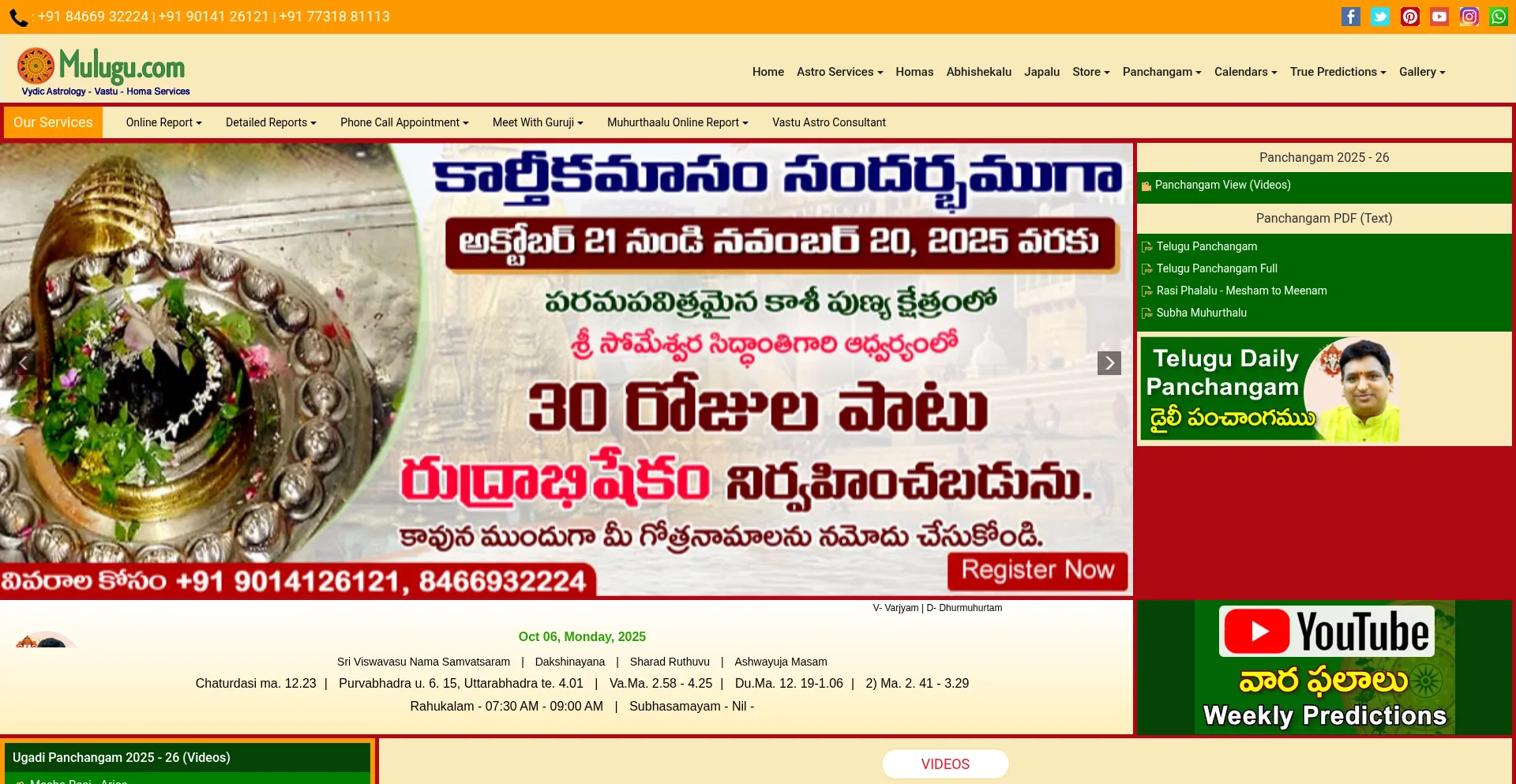 Mulugu.com Astrology Appointments - Telugu Jathakam and Jyothisham - Mulugu.com | Panchangam 2025 -2026 | Telugu Calendar 2025 | Sri Viswavasu Nama Samvatsara Panchangam
