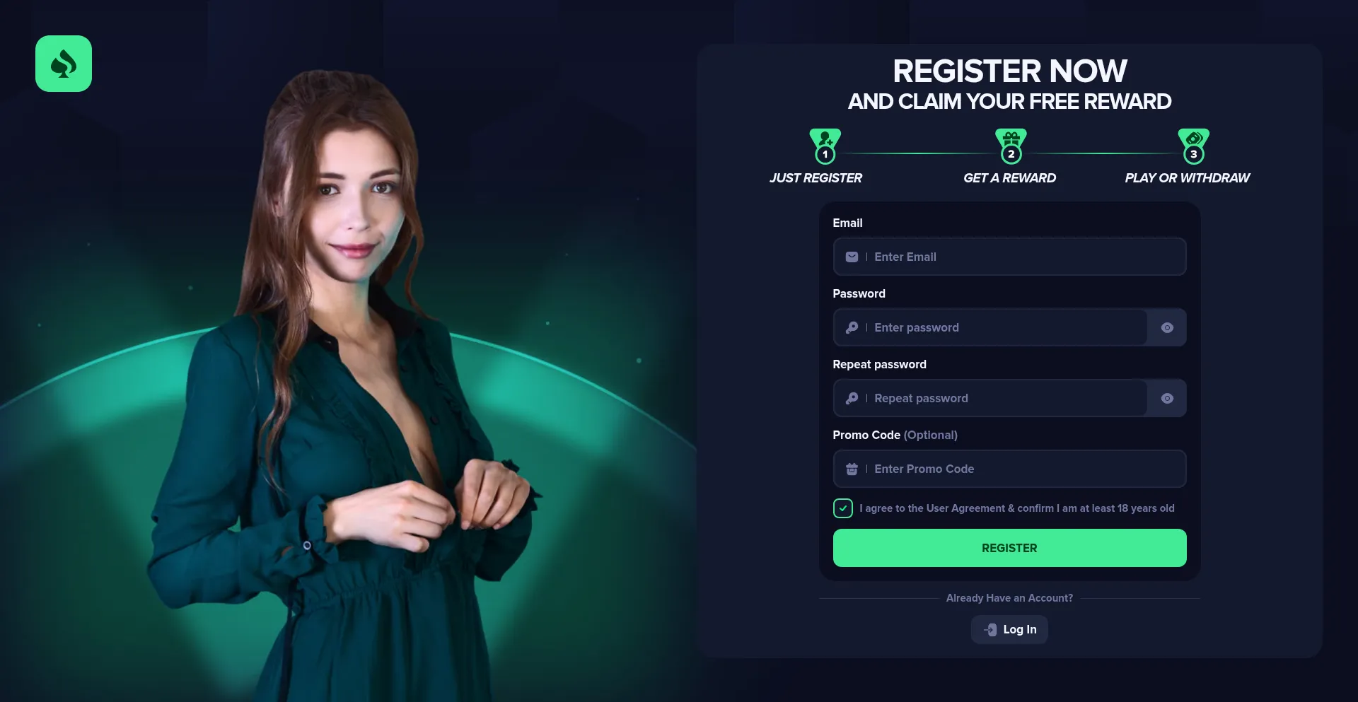 18+, Cryptocurrency, Registration Form, Casino, Cloudflare Browser Insights, Facebook Integration, Young Domain