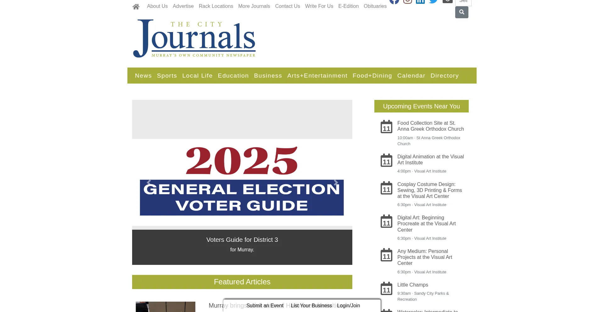 The Murray Journal is the local newspaper covering news and events in the City of Murray, Utah. The Murray Journal provides one of the best advertising channels to the residents...