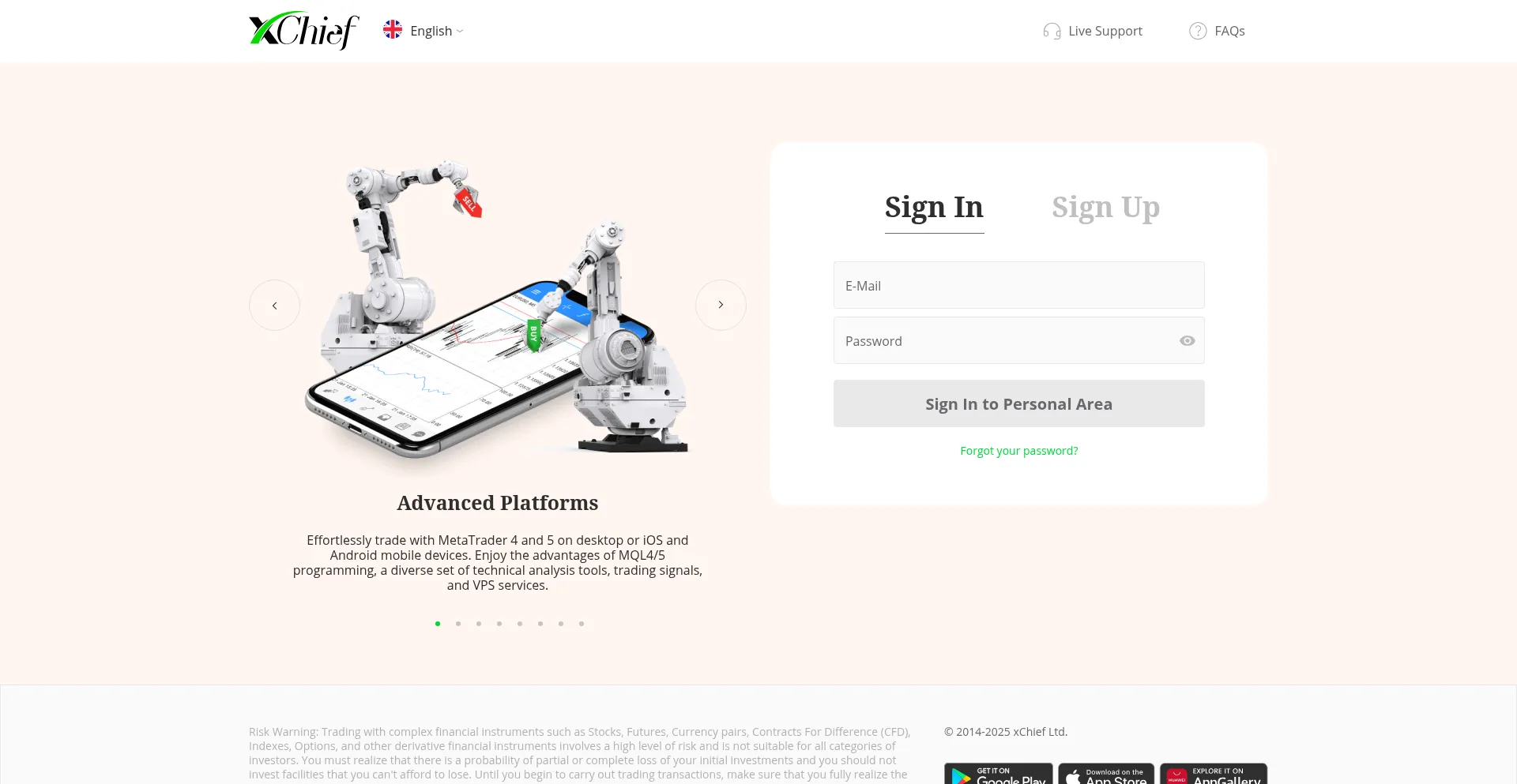 my.xchief.com oferece uma aplicação móvel para dispositivos Android, indicando presença de plataforma expandida além dos serviços baseados na web.