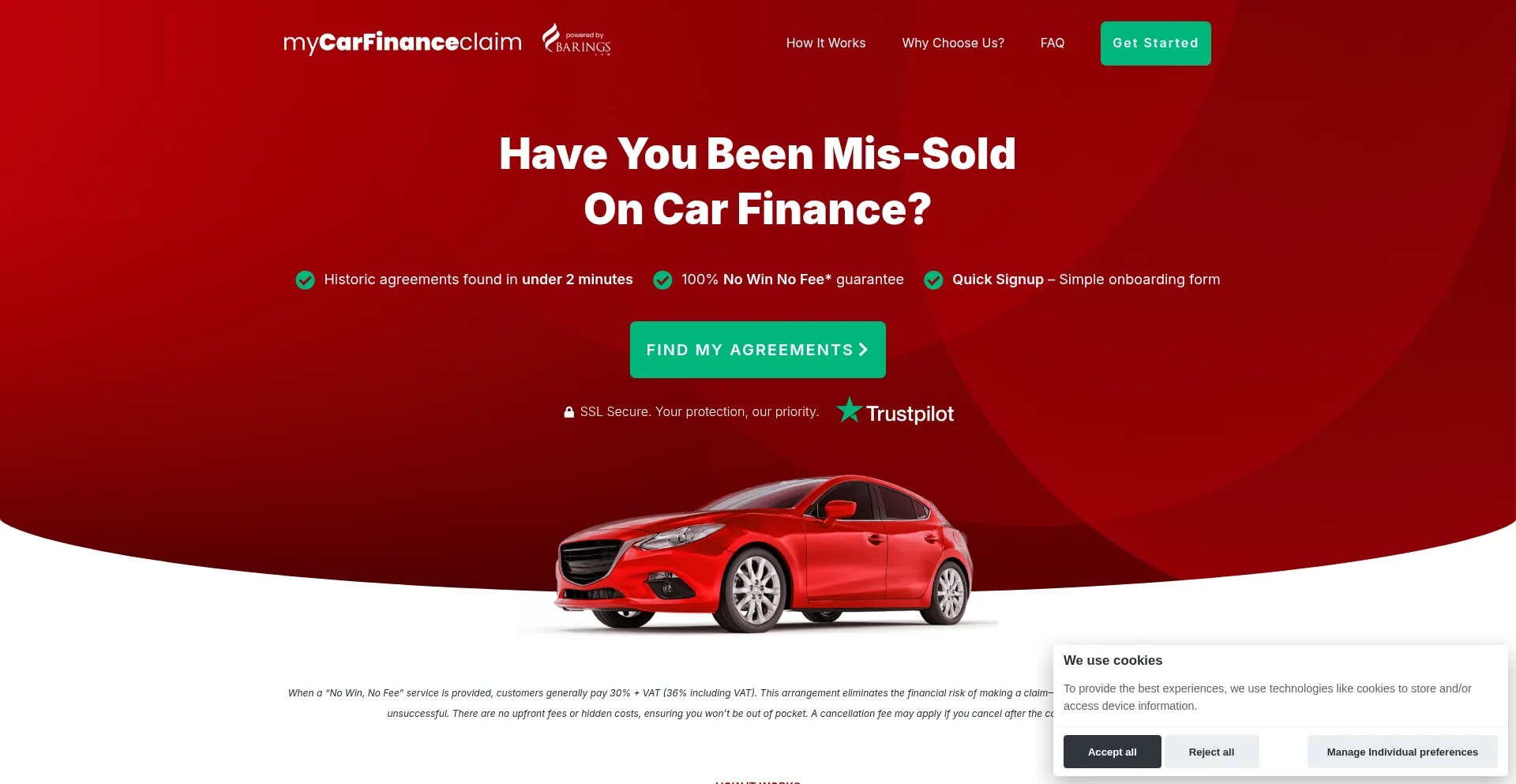 How It Works Why Choose Us? FAQ Get Started Have you been mis-sold on car finance? Historic agreements found in under 2 minutes 100% No Win No Fee* guarantee Quick Signup – Si...