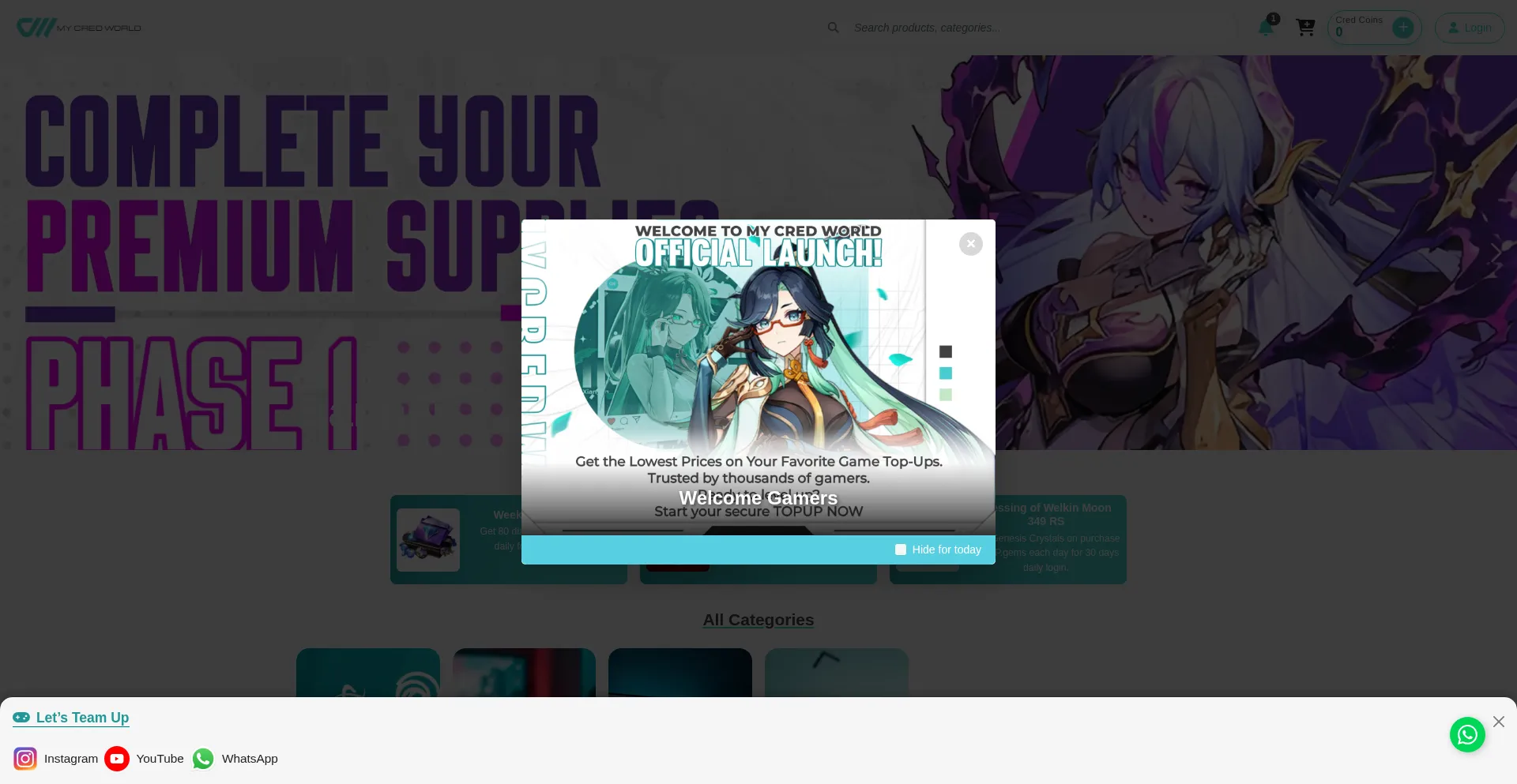 My Cred World - Secure and affordable top-ups, game accounts, Windows products, gift codes, and OTT coupons.