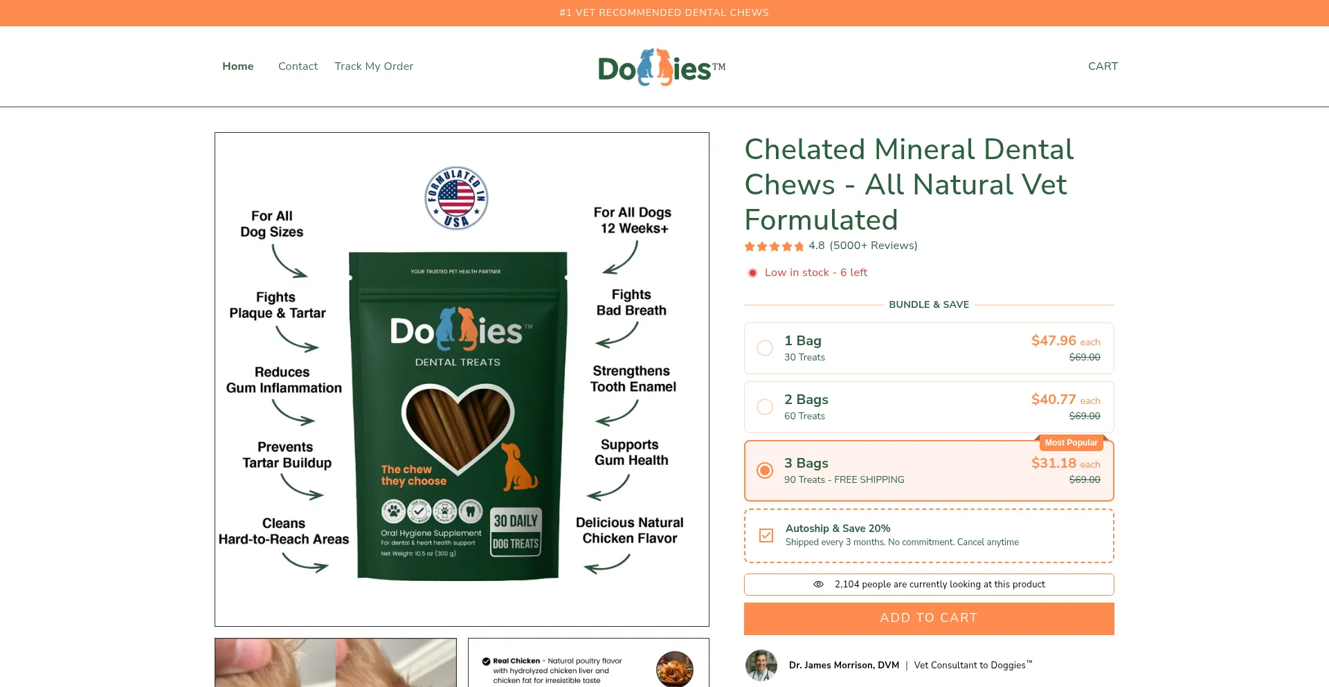 Doggies™ is the vet-formulated dental chew that stops harmful oral bacteria, eliminates bad breath, and strengthens teeth with 23 essential vitamins and minerals. Clinically p...