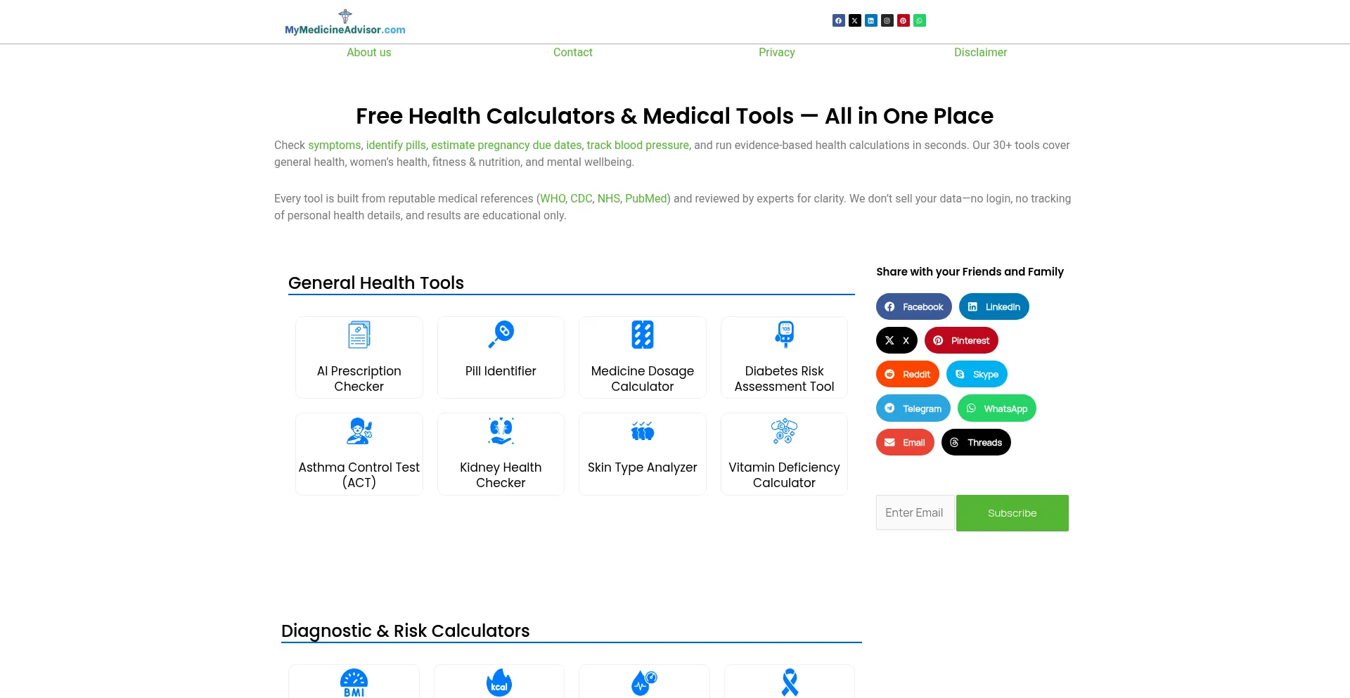 Free Health Calculators (30+) | MyMedicineAdvisor