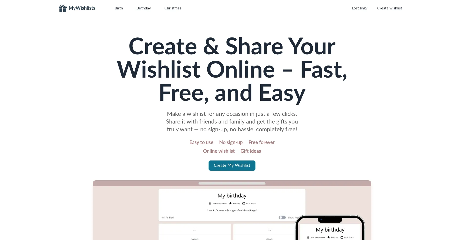 🎁 MyWishlists – Create & Share Wishlists Instantly, No Sign-Up Needed