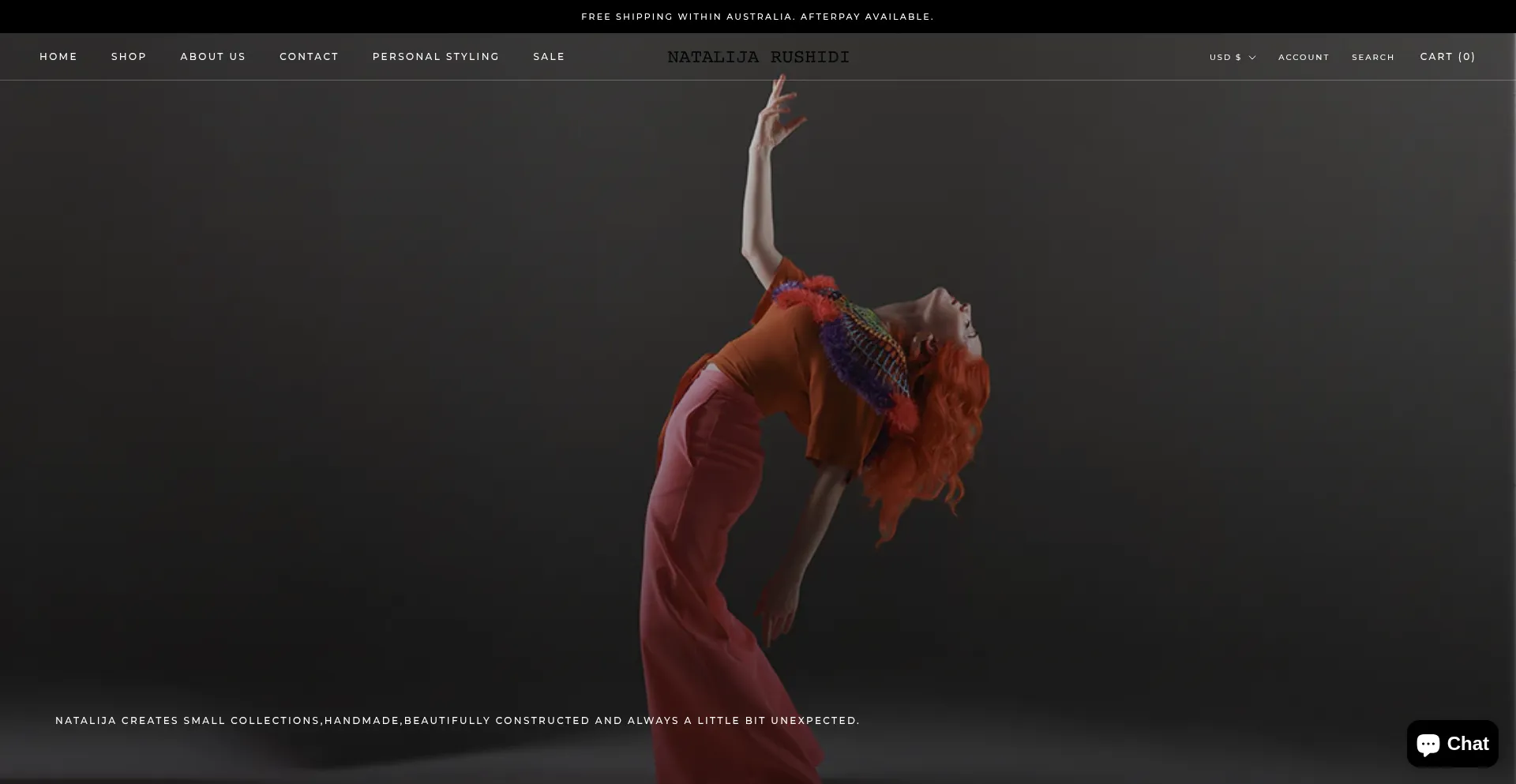 Ethically handmade clothing by fashion designer Natalija Rushidi in Newtown, Sydney, Australia.
