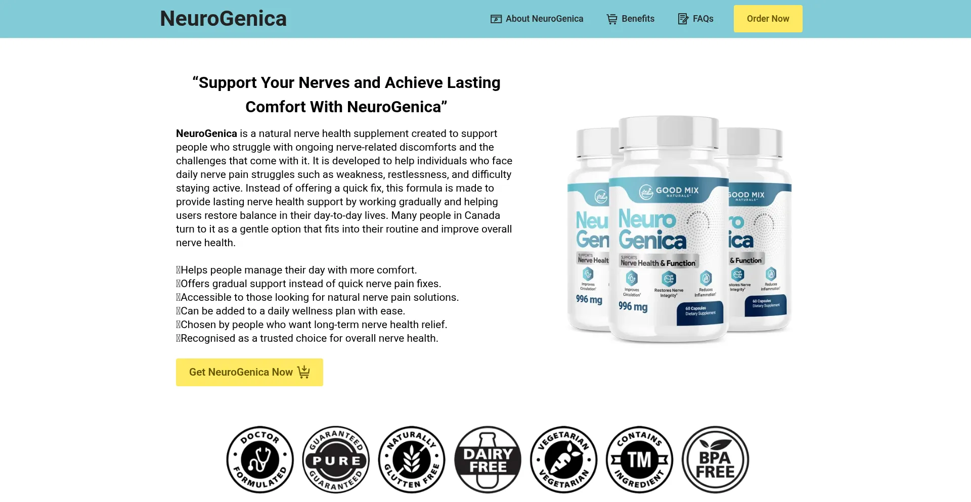 NeuroGenica is a natural supplement in Canada that supports the nervous system, eases sciatic nerve pain, reduces tingling, and promotes overall nerve health.