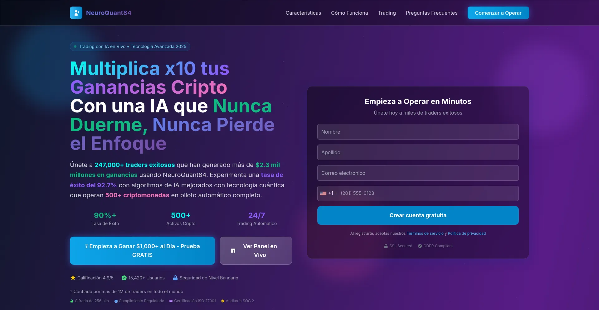 🚀 Transforma tu trading de criptomonedas con NeuroQuant84, el bot de trading con IA más avanzado de 2025. Experimenta más del 90% de precisión con nuestros algoritmos de v...