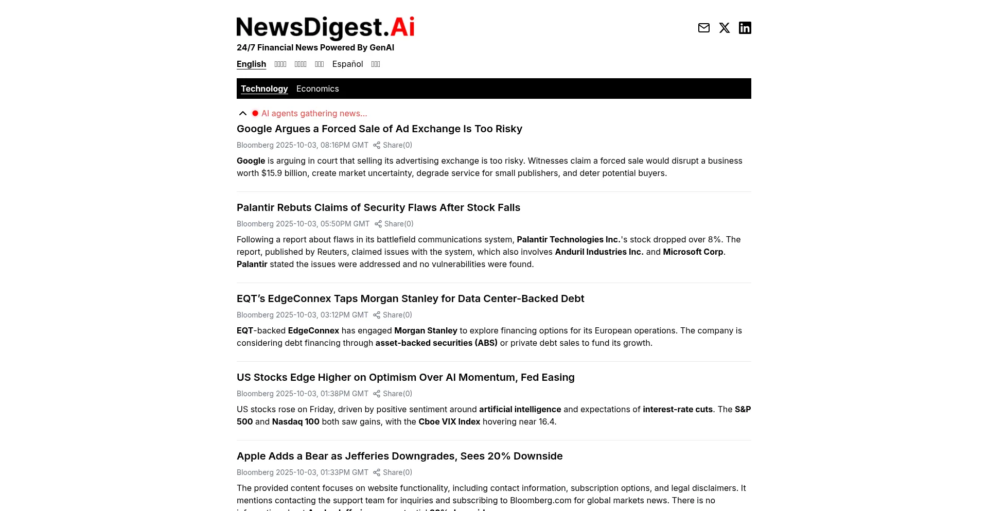 NewsDigest.Ai | 24/7 Financial News Powered By GenAI