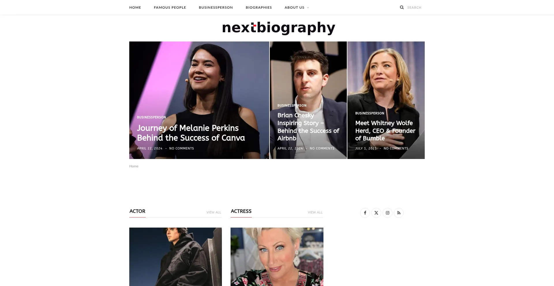A presença de links de redes sociais no site indica que nextbiography.com mantém contas oficiais em redes sociais, o que é um sinal positivo de credibilidade e engajamento.