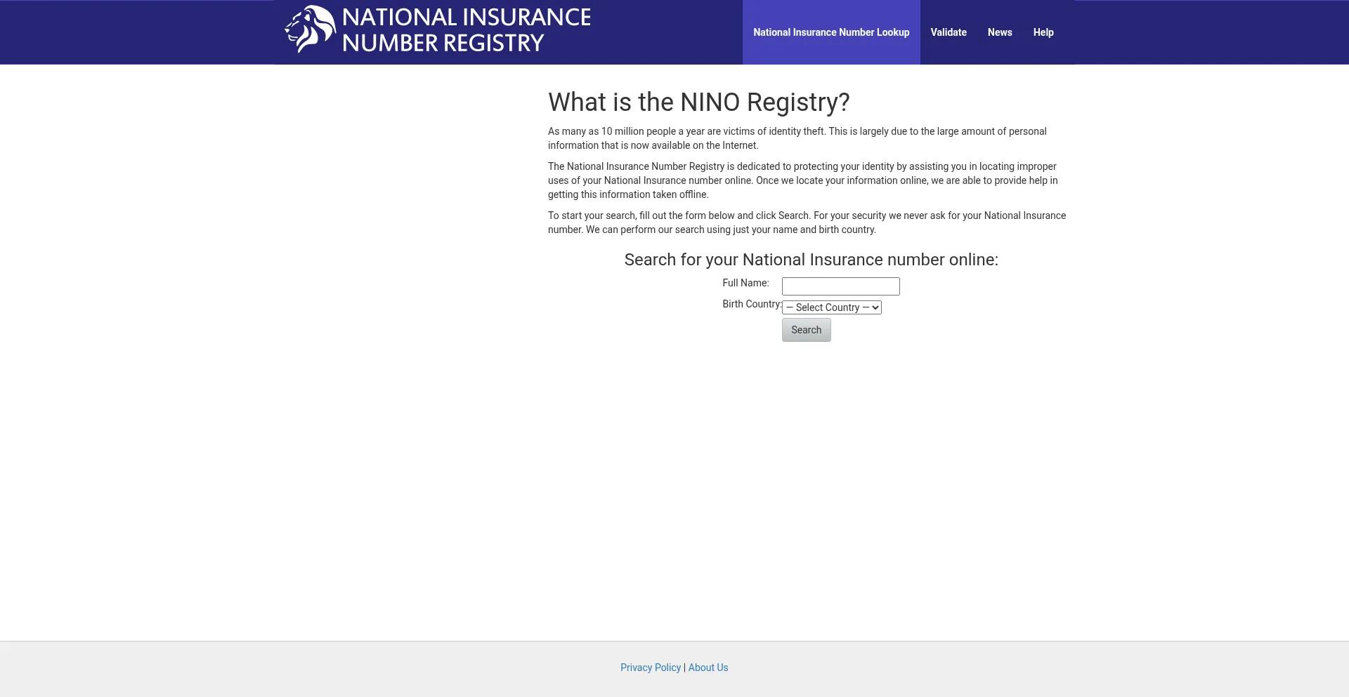 National Insurance Numbers Online - NINO Registry