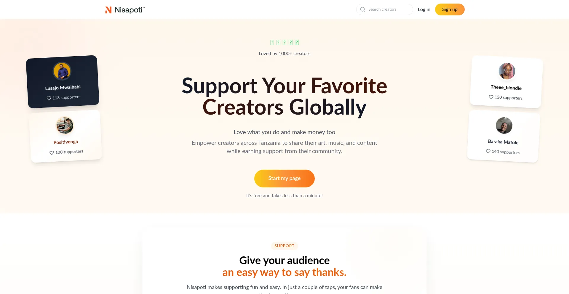Empower creators across Tanzania to share their art, music, and content while earning support from their community. Join Nisapoti to support your favorite creators!