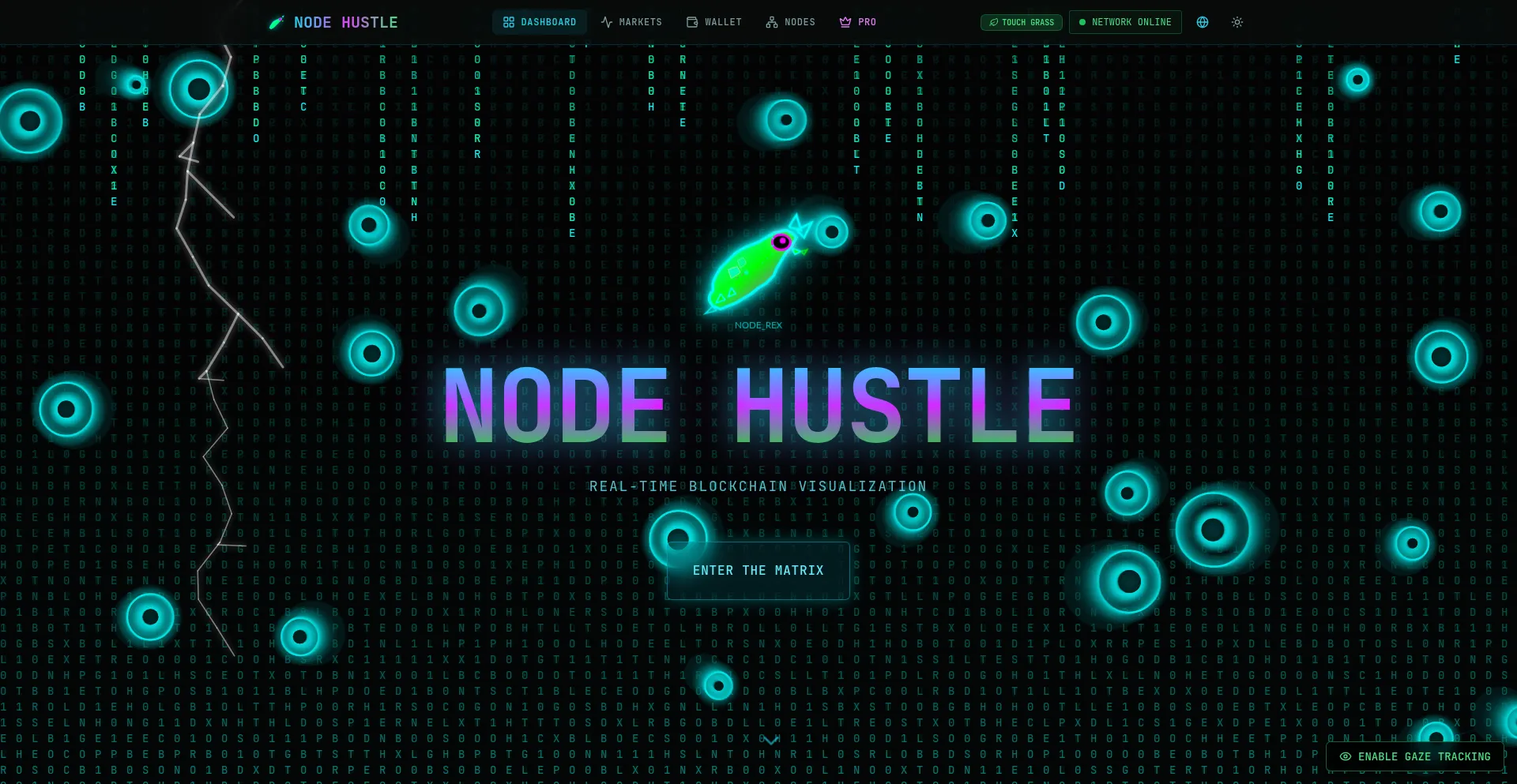 Node Hustle - Real-time blockchain visualization dashboard with live crypto prices, DAG network topology, and wallet tracking. Enter the Matrix of decentralized finance.