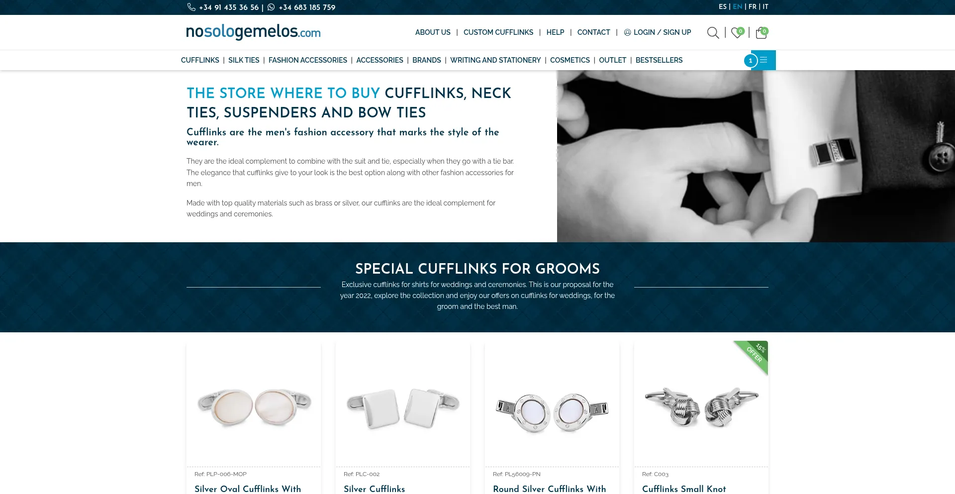 Online store of cufflinks for shirts, ties, suspenders, bow ties.