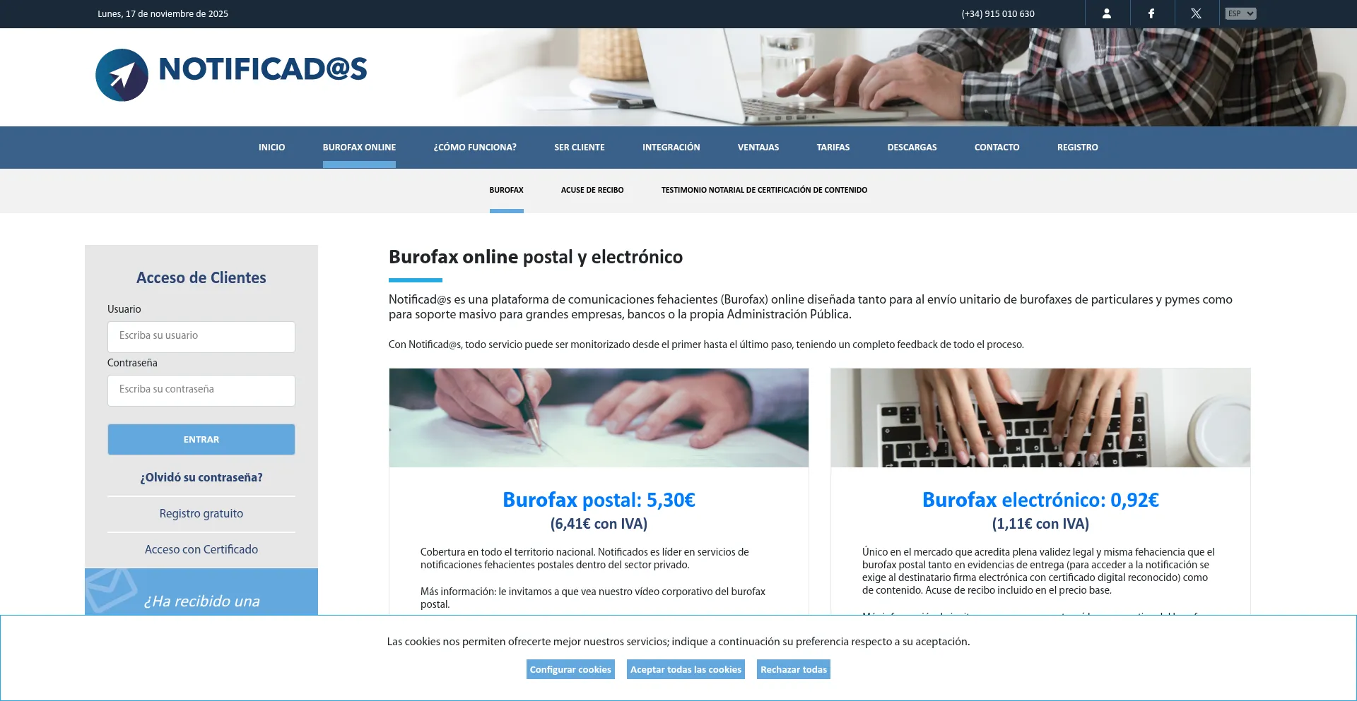 Envio de Burofax Online a través de Internet, tanto burofax electrónico como burofax postal y notificaciones fehacientes con acuse de recibo.