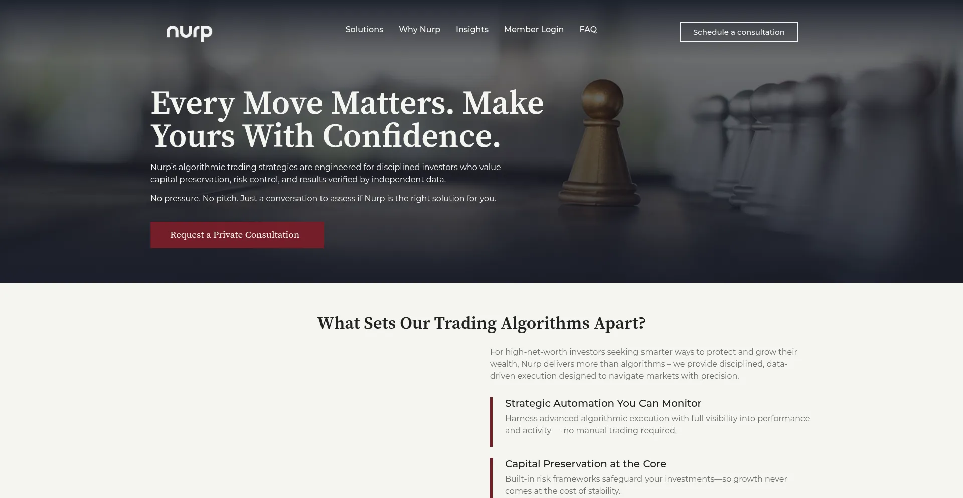 Every Move Matters. Make Yours With Confidence. Nurp’s algorithmic trading strategies are engineered for disciplined investors who value capital preservation, risk control, an...