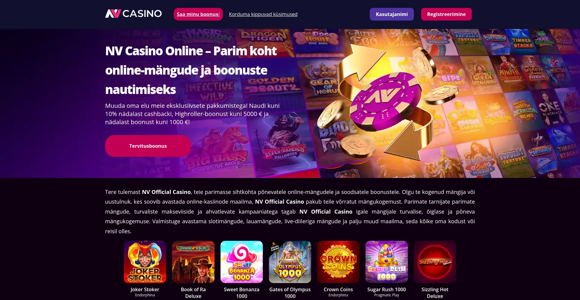 Avasta NV Casino: suur mängude valik, turvalised maksed ja kiired väljamaksed. Registreeru kohe ja saa oma boonustest maksimum.