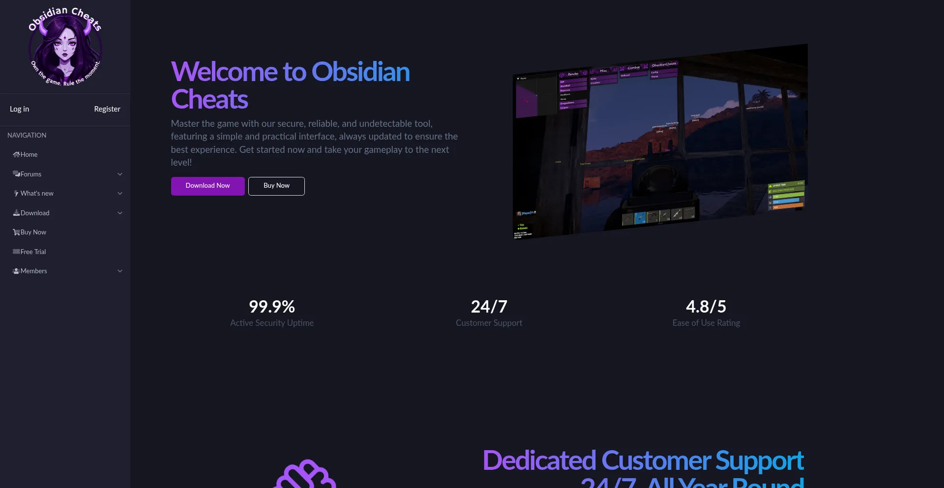 Obsidiancheats.com Avaliação: Seguro ou suspeito? Confiabilidade muito baixa 1/100