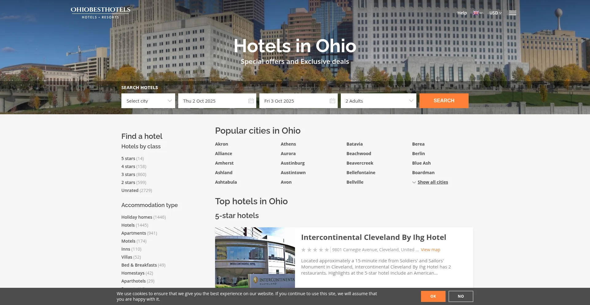 Online booking for hotels in Ohio, United States. Good availability and great rates. Cheap and secure, pay at the hotel, no booking fees.