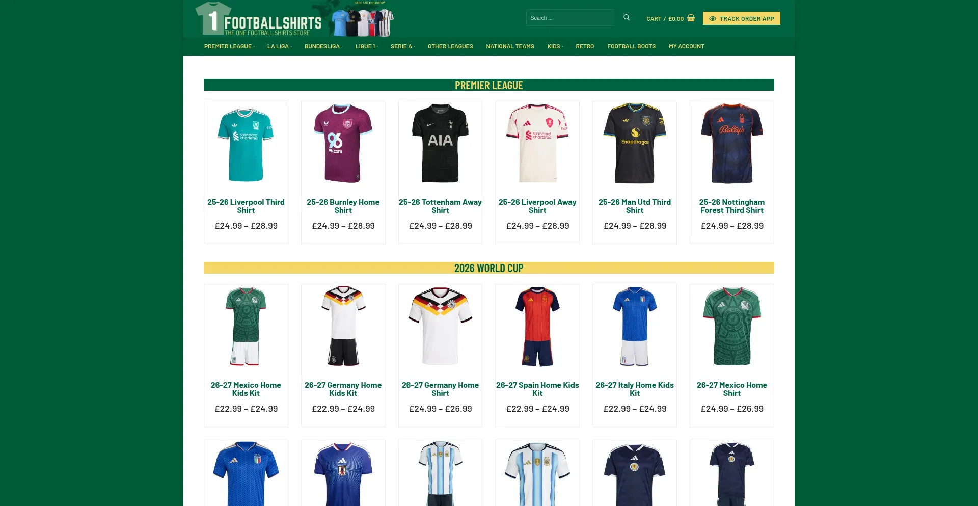 Shop The Latest 25-26 Football Kits At OneFootballShirts | Free UK Delivery On All Orders | Shirts And Full Kits Available For All Ages.