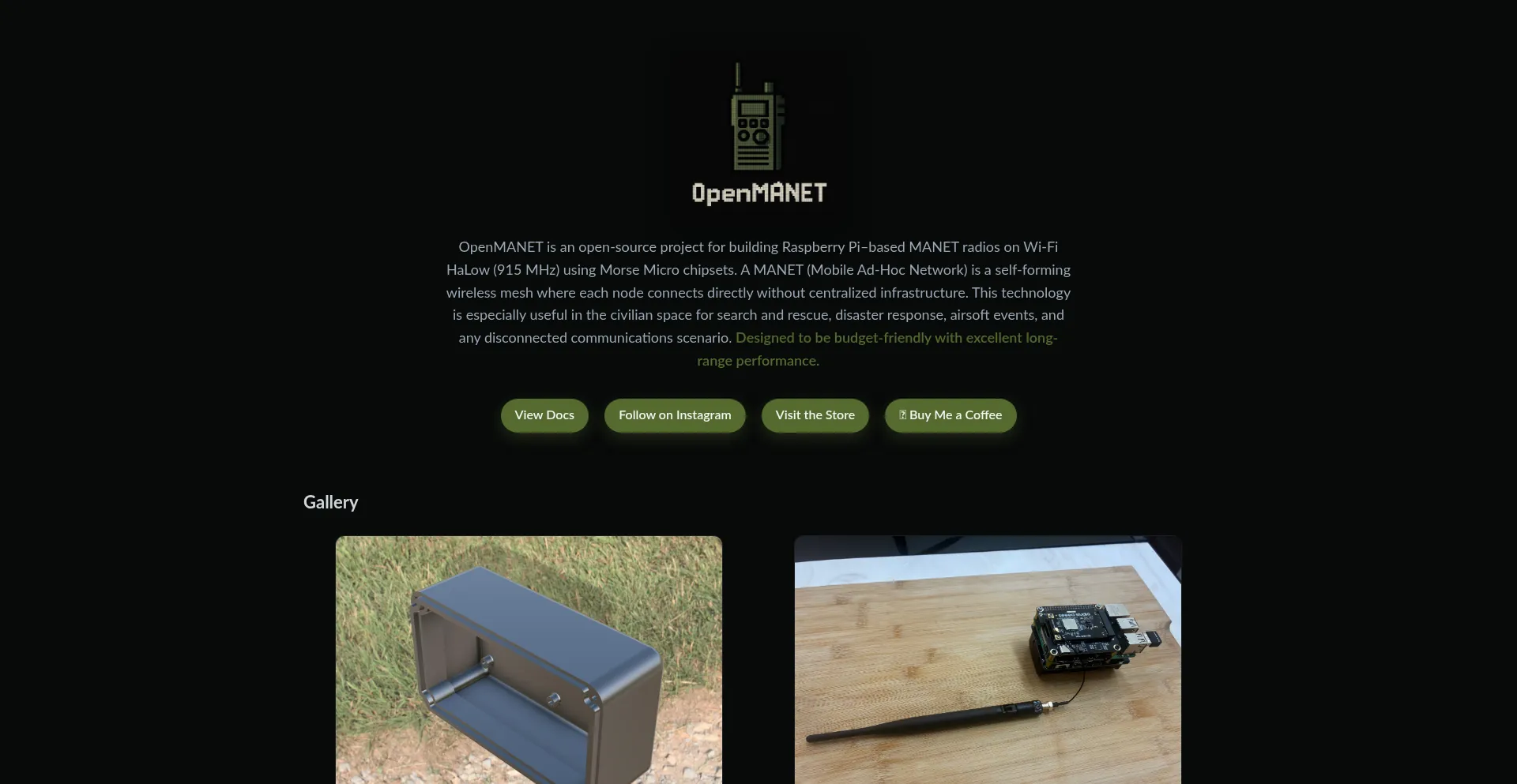 OpenMANET is an open-source Raspberry Pi–based MANET radio using Wi-Fi HaLow (Morse Micro).